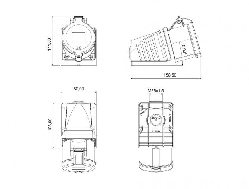 Bemis BC1-3403-2535 Cee Norm 3X32A 220V IP44 90 Derece Eğik Duvar Prizi
