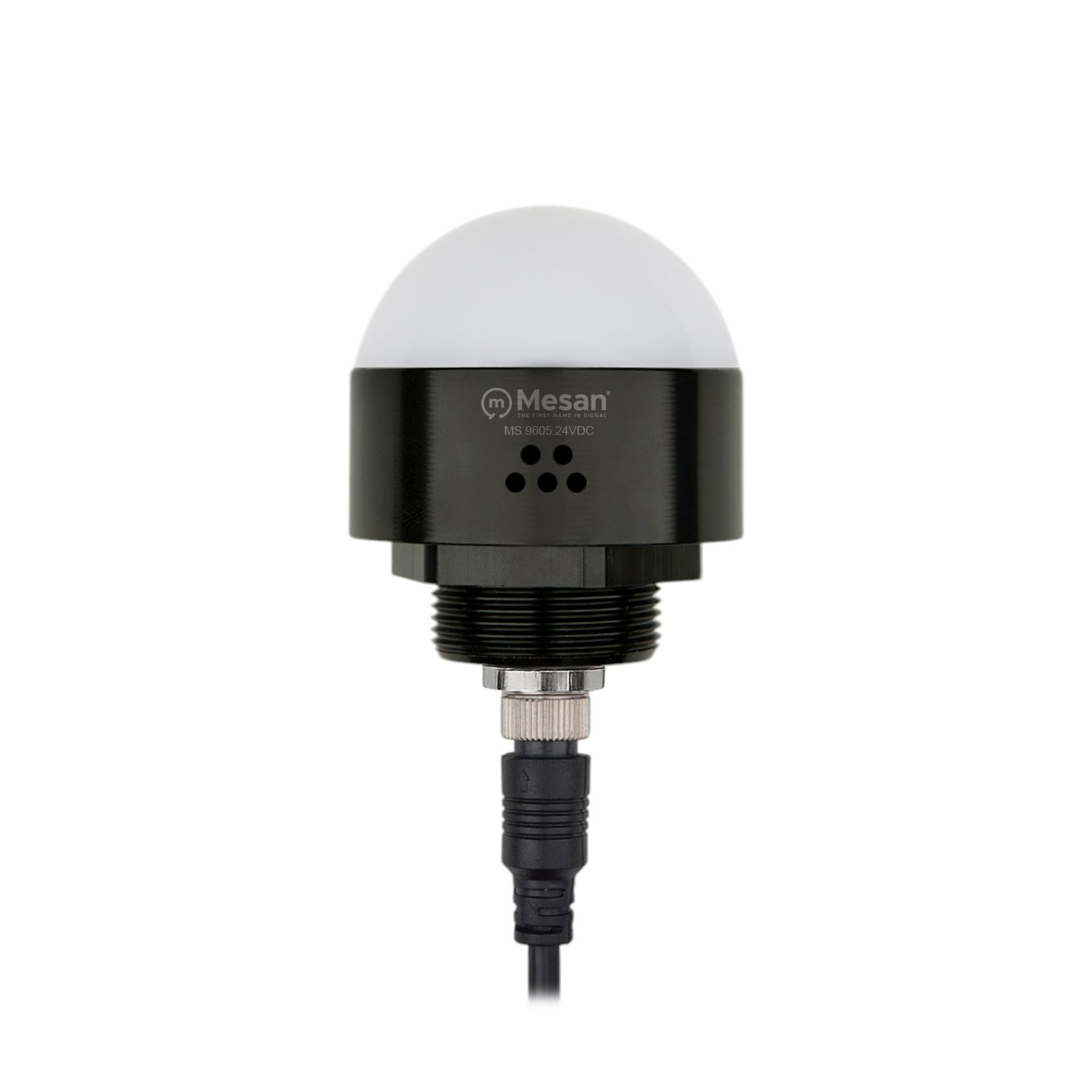 Mesan MS 9605.24VDC Ø50 M30 Somun Bağlantılı LED İndikatör M12 Konnektör RGY Buzzer Siyah Gövde