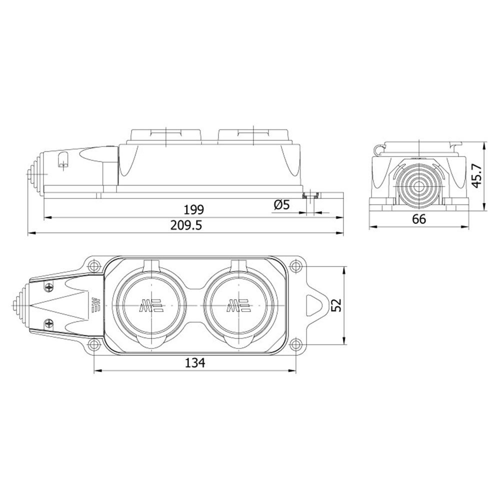Mete Enerji 404014 1X16A Kauçuk Üçlü Grup Priz Eğik